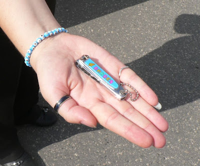 Ez egy olyan koromcsipesz, amelyet még 2007 nyarán vásároltam Rodosz szigetén. Azóta még kétszer volt kint velem a szigeten. Szükségét érzem, hogy ez a tárgy mindig nálam legyen, egyrészt mint emlék, másrészt mint funkcionális tárgy. Elsősorban körömvágásra használom, de lehet vele körmöt reszelni, konzervet és kupakot nyitni, bár ezt a két utóbbi funkciót nem szoktam használni. Jó kis útikellék.